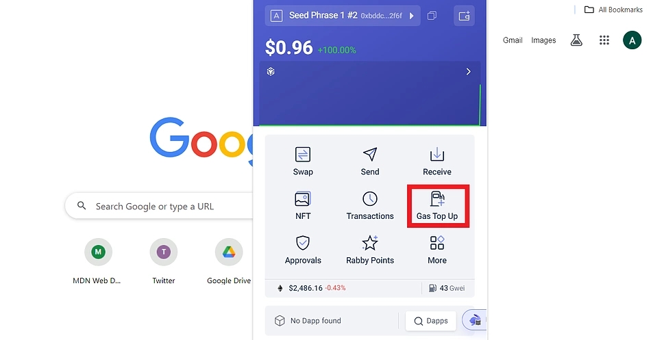 Click on the Gas Top Up icon from your Rabby Wallet menu.
