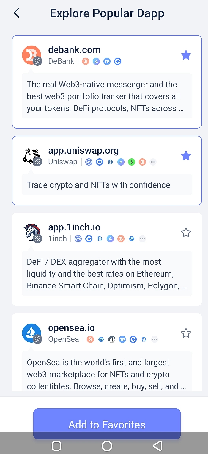 From the dApp list, select your favorite applications and click Add to Favorites to add them to your list for easy access.