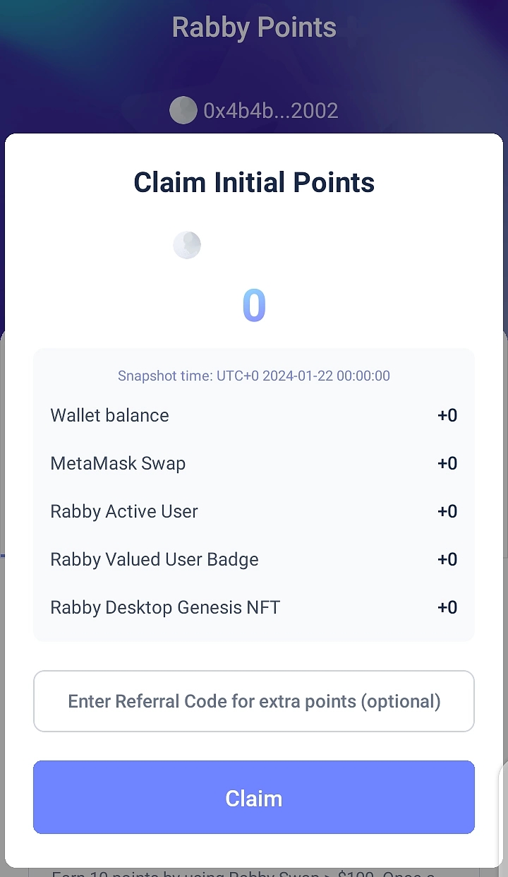 Click on Points from the bottom menu of your Rabby mobile wallet to navigate to the claiming page.